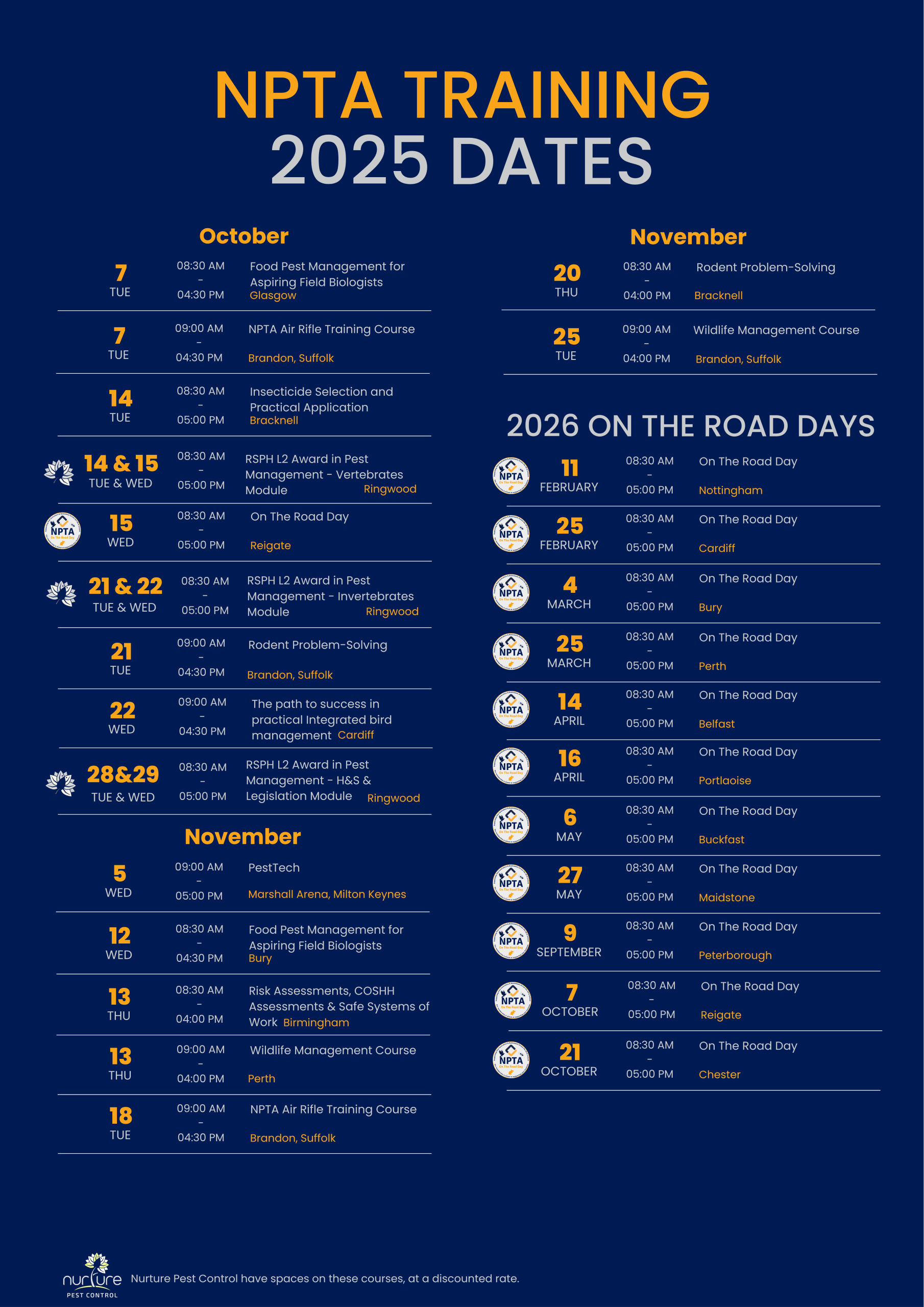 NPTA Training Calendar